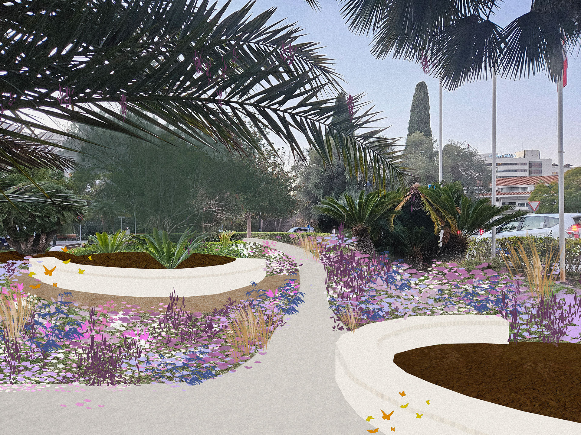 Formas orgánicas y círculos crean un espacio saludable en el que la resiliencia y la sostenibilidad son las protagonistas. La biodiversidad presente en la obra de Klimt se recrea mediante Soluciones basadas en la Naturaleza, logrando así un fomento de la flora y la fauna urbanas. Las comunidades vegetales atraen a la biodiversidad y los visitantes experimentan la conexión con la naturaleza propia de las ciudades verdes que mitigan los efectos del cambio climático.